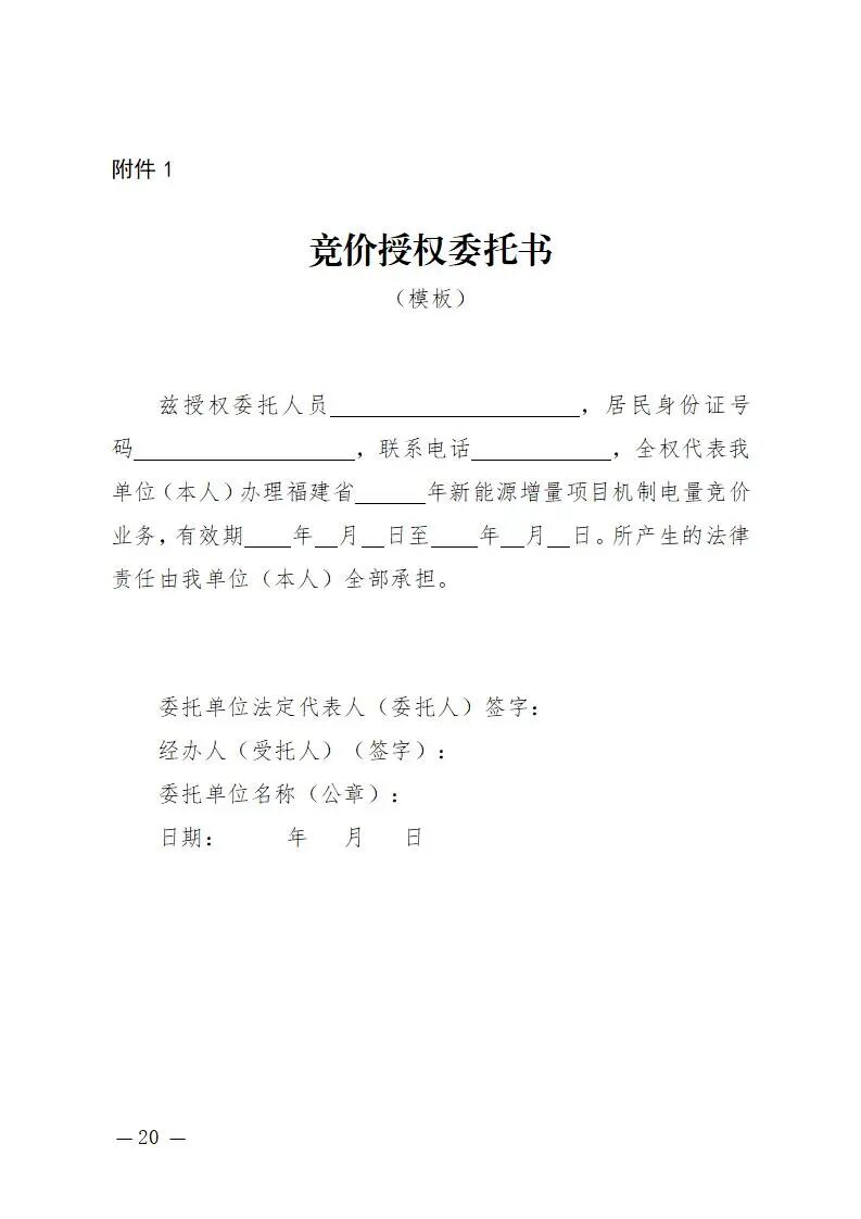 福建省新能源增量项目竞价工作方案